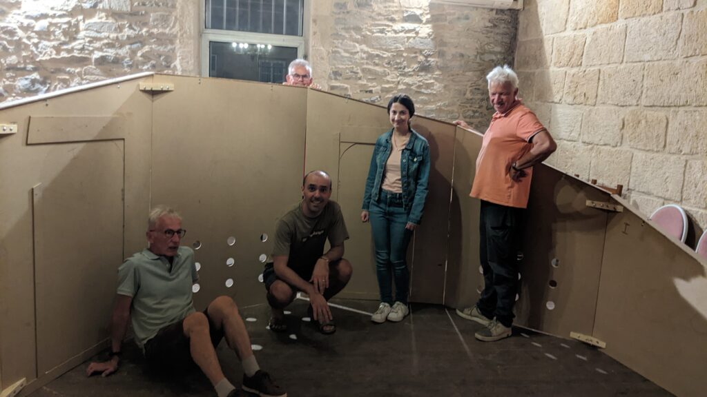 Pour ce qui est des améliorations, un troisième taquet s’avère nécessaire sur les grands panneaux. Les bases seront équipées lors des séances vidéo de manchons mousse afin de corriger les irrégularités du sol et d’obscurcir correctement l’ensemble.