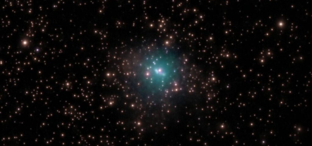 Denis tenta avec succès d’apercevoir la seconde comète prénommée SWAN (C/2025 R2) actuellement dans notre ciel côté sud. La voilà dans l’oculaire de son télescope mais moins que pour LEMMON, aucune trace de la queue.