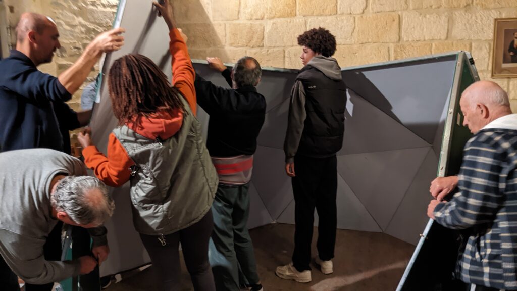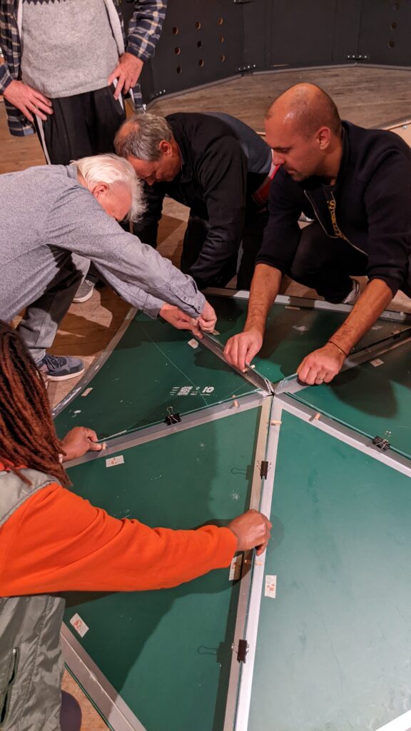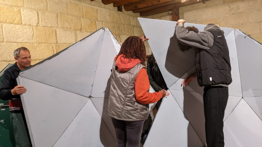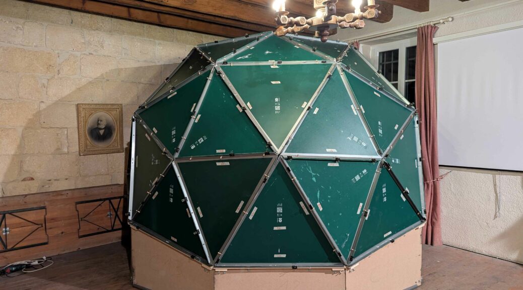 L’objet de cette séance était de marquer une étape importante : valider le montage de l’ensemble du planétarium, à savoir, le dôme sur le support.