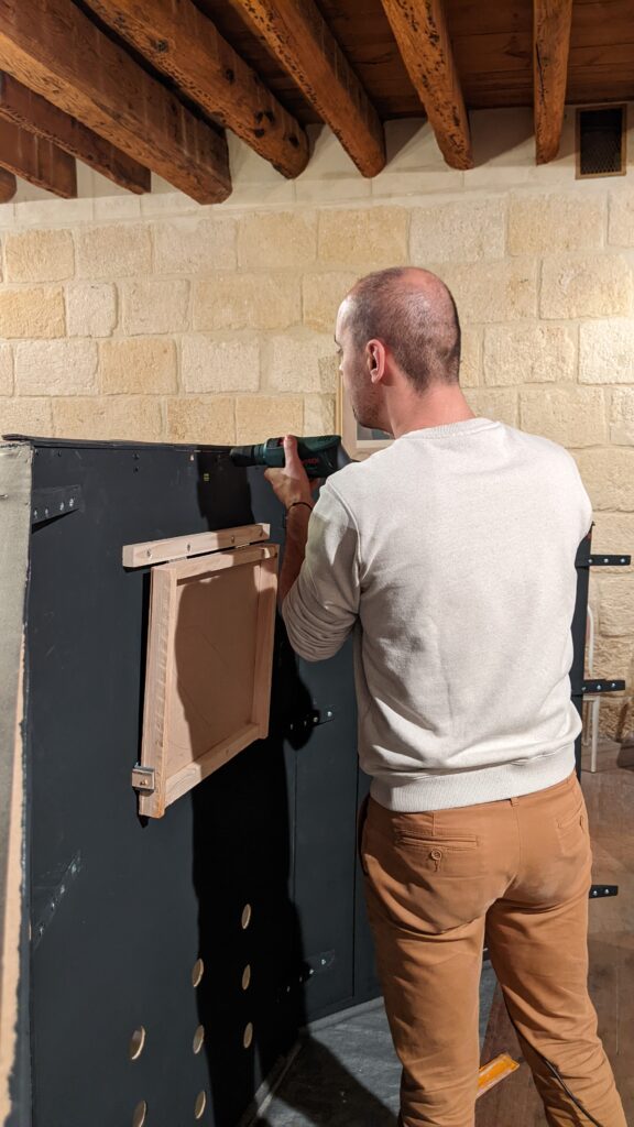 Pas de peinture donc comme prévu mais installation et essais de projection du ciel à l’aide des miroirs.